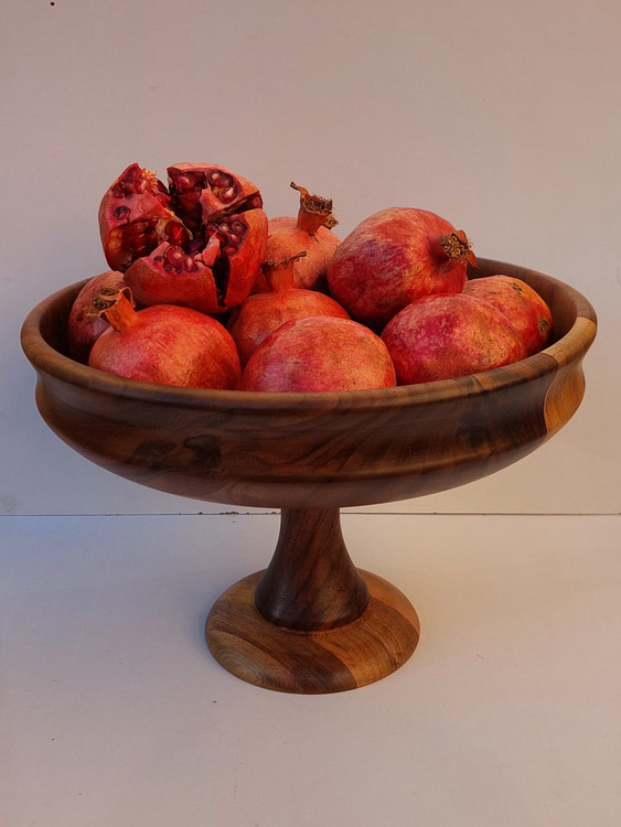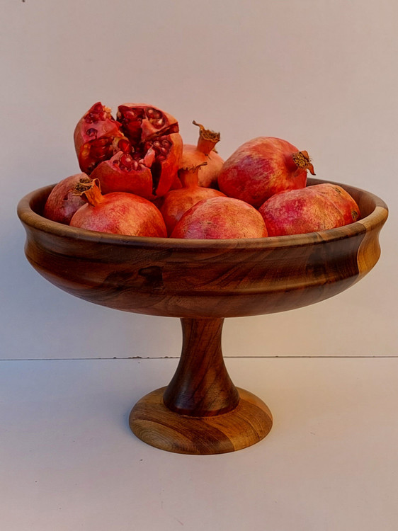 کاسه چوب گردو پایه دار و دستساز خراطی شده در ابعاد 30 سانت باقابلیت شست و شو بصورت تک و عمده در فروشگاه موجود میباشد .