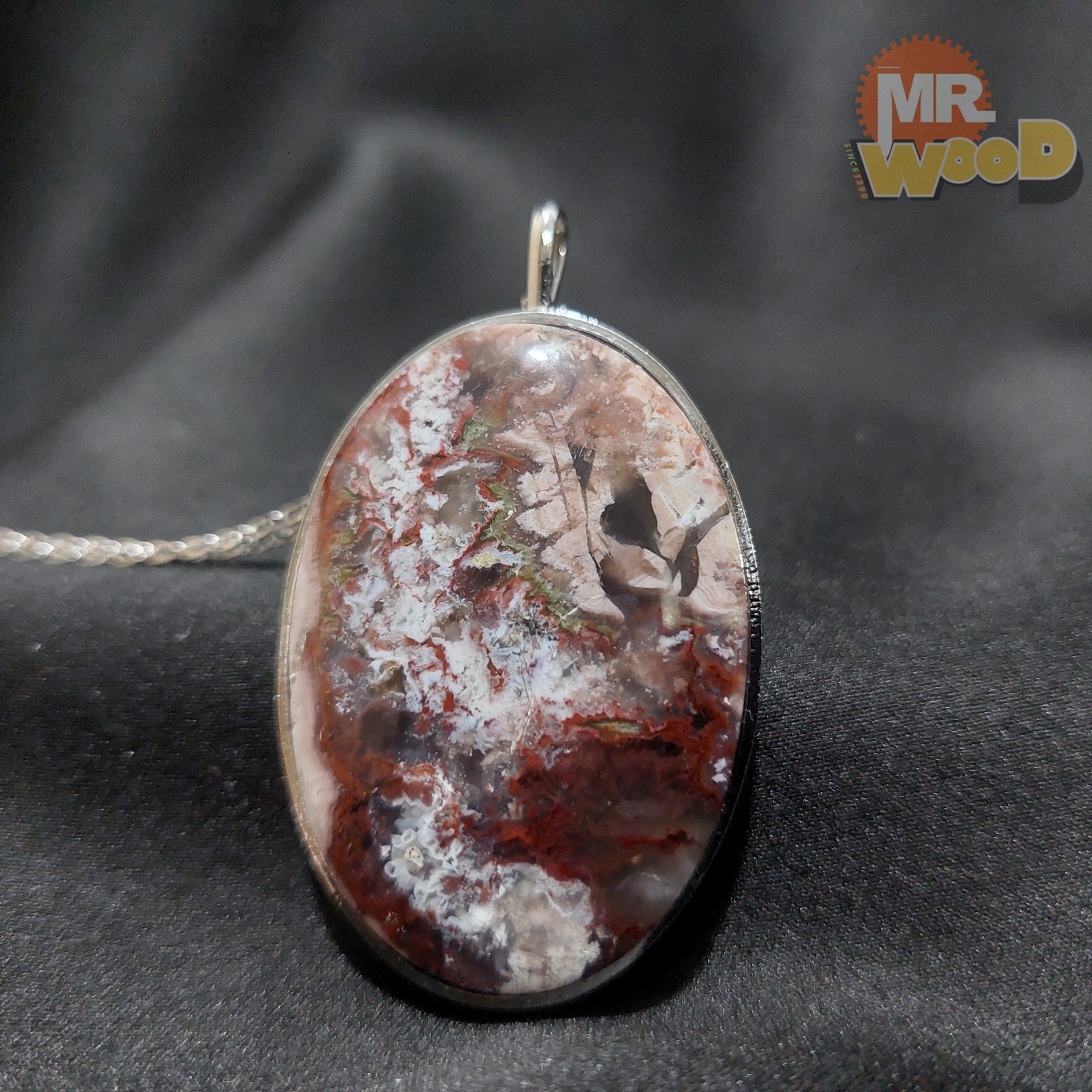 گردنبند عقیق شجر گل اناری خراسان بسیار زیبا (استیل رنگ ثابت)