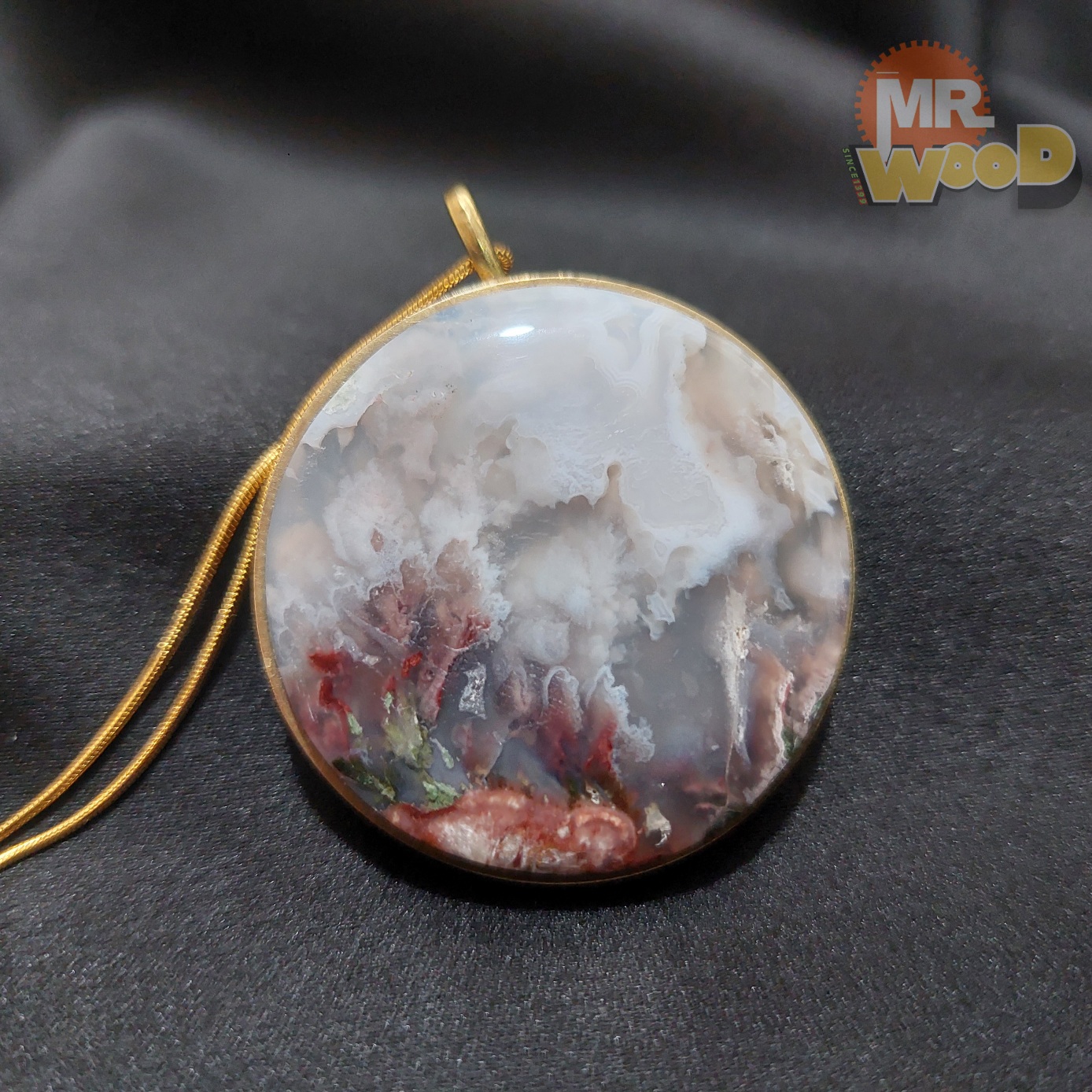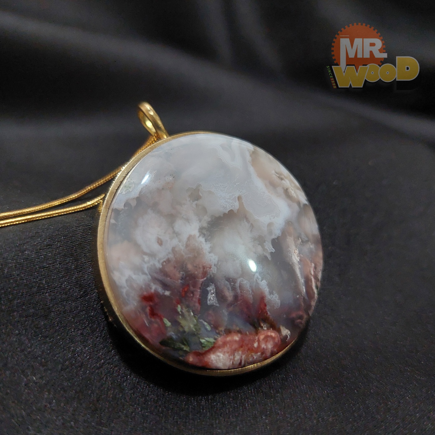 گردنبند عقیق شجر منظره گل اناری (سایز درشت)