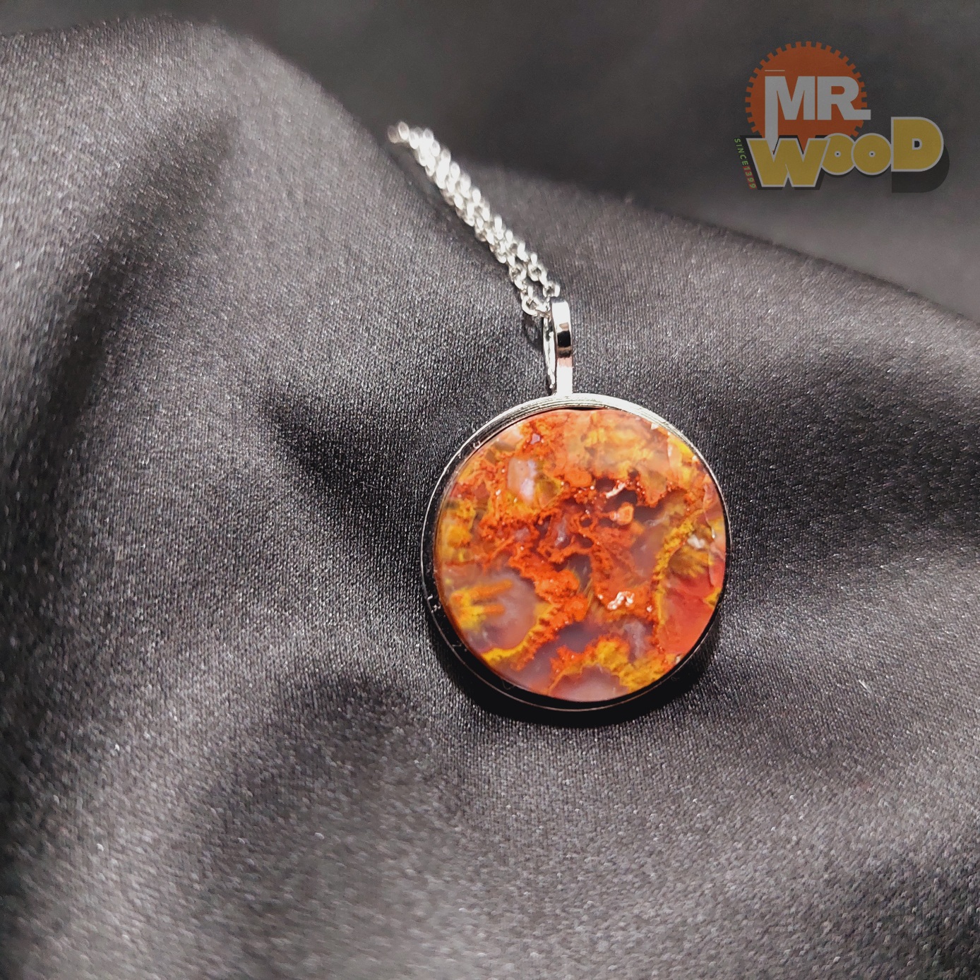 گردن آویز عقیق شجر منظره پاییز بسیار زیبا (فریم استیل ضدحساسیت)