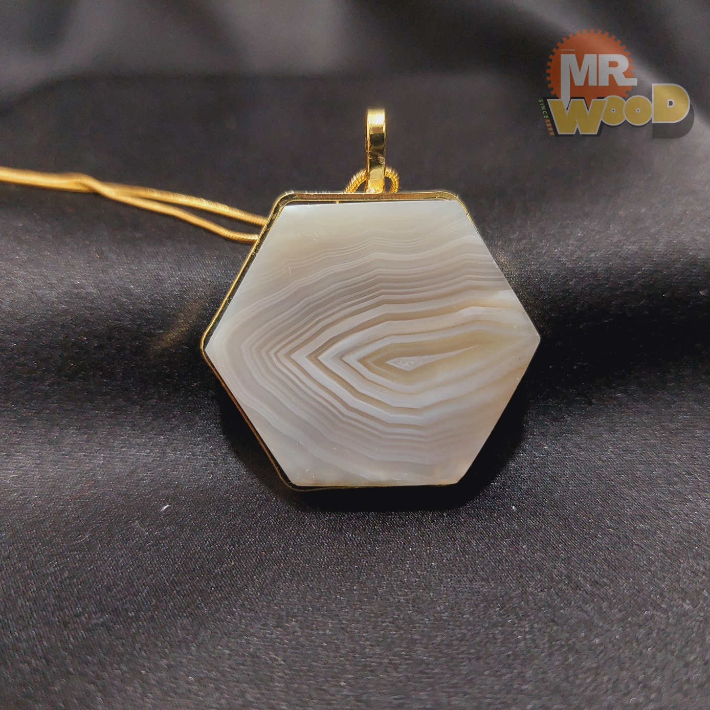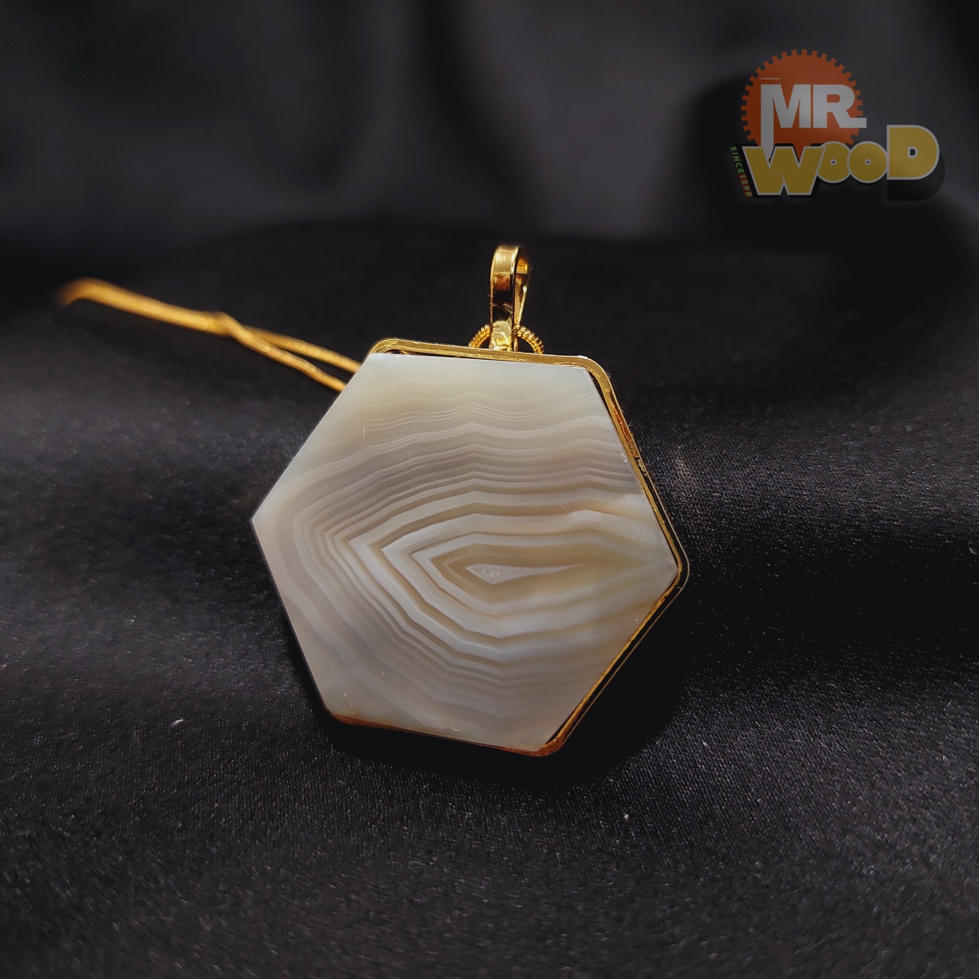 گردن آویز عقیق سلیمانی (فریم استیل)سایز درشت