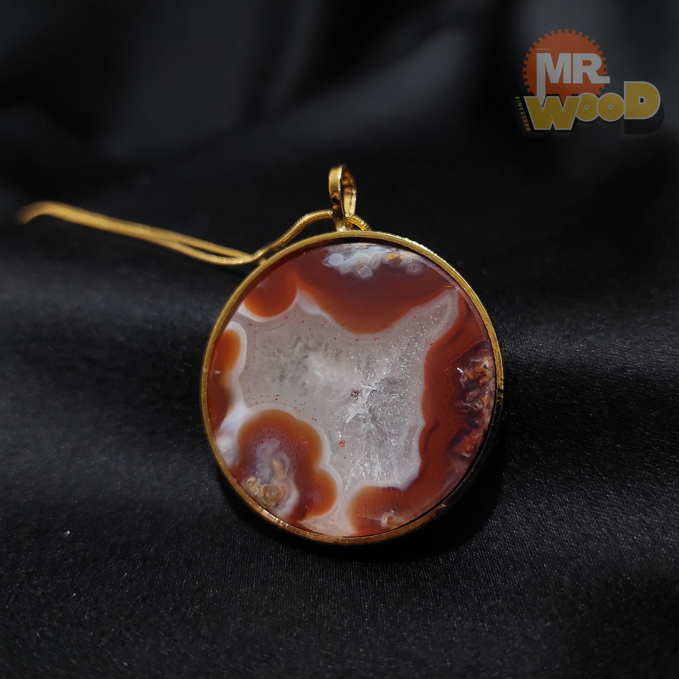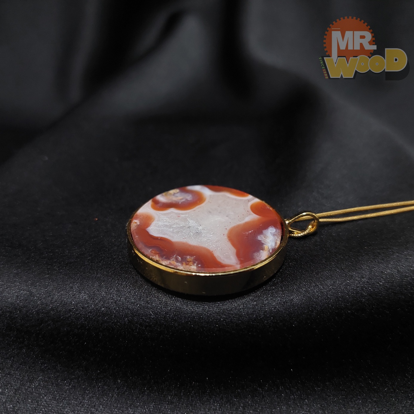 گردن آویز عقیق سرخ مصور (فریم استیل رنگ ثابت)