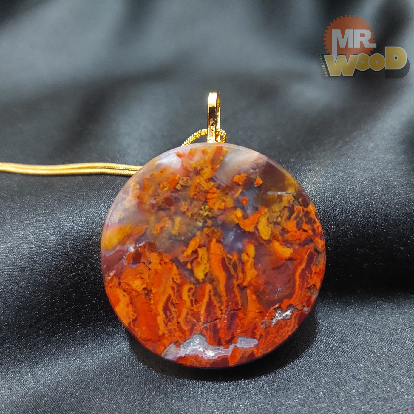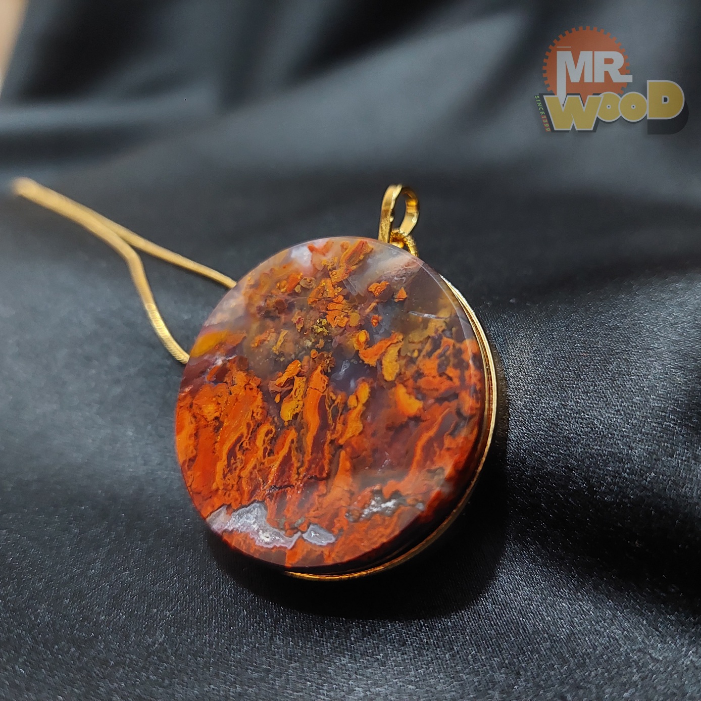 گردنبند عقیق شجر پاییزی بسیار زیبا (فریم استیل رنگ ثابت)