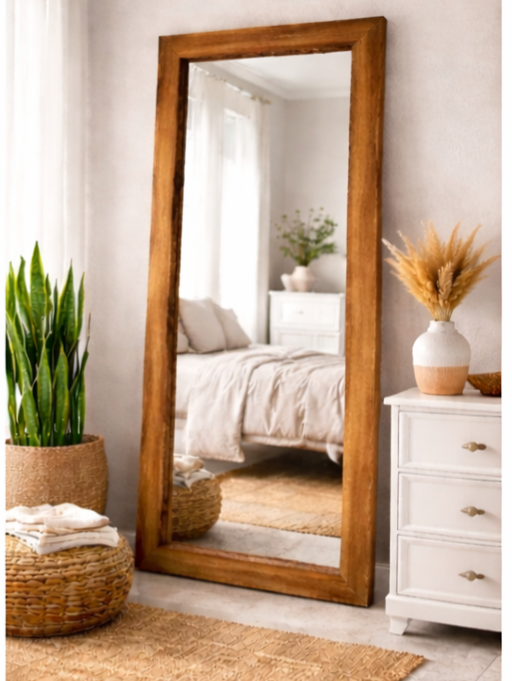 این آینه قدی روستیک با فریم چوبی طبیعی و طراحی دستساز، جلوهای گرم و صمیمی به فضای خانه میبخشد. مناسب برای اتاق خواب، ورودی یا سالن نشیمن، این آینه قدی علاوه بر زیبایی، کاربردی کامل برای دید تمام قد را فراهم میکند.